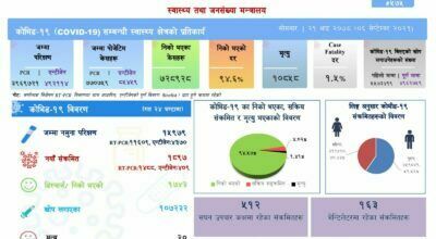 काठमाडौं । पछिल्लो २४ घण्टामा थप १ हजार ८९७ जनामा कोरोना भाइरसको संक्रमण पुष्टि भएको