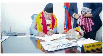 काठमाडौं । प्रधानमन्त्री केपी शर्मा ओलीसमक्ष नवनियुक्त ऊर्जा, जलस्रोत तथा सिँचाइ राज्यमन्त्री खमबहादुर गर्बुजाले आज
