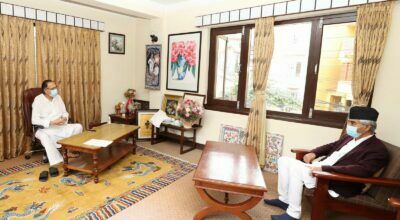 काठमाडौं । प्रधानमन्त्री शेरबहादुर देउवाले नेकपा (एकीकृत समाजवादी)का वरिष्ठ नेता झलनाथ खनालसँग भेट गरेका छन्