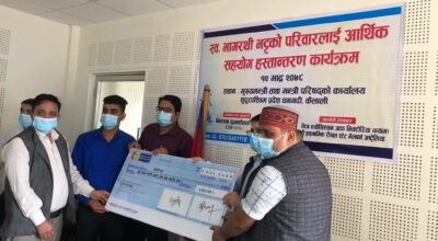 बैतडी । बैतडीकी हत्या गरिएकी भागरथी भट्टका परिवारलाई आर्थिक सहयोग गरिएको छ । च्यारिटी म्याचका