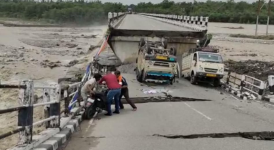 काठमाडौं । पछिल्लो ४८ घण्टा देखी परेको अभिरल वर्षका कारण भारतमा आएको बाढीले पूल बगाएको