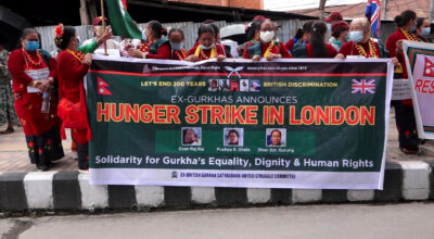 काठमाडौं । भूतपूर्व ब्रिटिस गोर्खा संयुक्त संघर्ष समितिले तलव, भत्ता तथा सेवा, सुविधामा समानताको माग