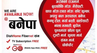 काठमाडौं । डिशहोमको फाइबरनेट सेवा बनेपामा विस्तार भएको छ । छोटो समयमै तीव्ररुपमा आफ्नो सेवा