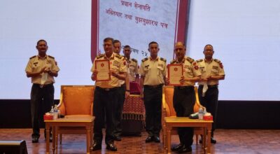 काठमाडौं । प्रधानसेनापति पूर्णचन्द्र थापाले बलाधिकृतरथी प्रभुराम शर्मालाई सङ्गठनको कमाण्ड हस्तान्तरण गरेका छन् । सैनिक