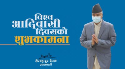 काठमाडौं । प्रधानमन्त्री शेरबहादुर देउवाले विश्व आदिवासी दिवसको अवसरमा शुभकामना व्यक्त गरेका छन् । प्रधानमन्त्री
