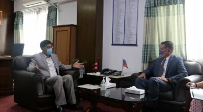 काठमाडौं । अर्थमन्त्री जनार्दन शर्मासँग नेपालका लागि अमेरिकी राजदूत ¥यान्डी बेरीले शिष्टाचार भेट गरेका छन्