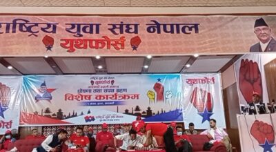 काठमाडौं । नेकपा एमालेको भातृ संगठन राष्ट्रिय युवा संघ नेपालको आयोजनामा युथफोर्सको उपत्यका कमाण्ड फोर्स
