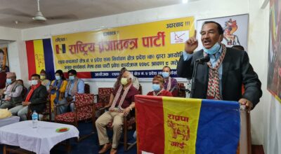 काठमाडौं । राष्ट्रिय प्रजातन्त्र पार्टीका अध्यक्ष कमल थापाले हिन्दुराष्ट्र र राजसंस्था पुनर्स्थापनाको लागि देशव्यापाी आन्दोलन