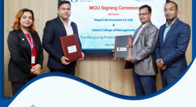 काठमाडौं । नेपाल लाइफ इन्स्योरेन्स कम्पनी लिमिटेड र ग्लोबल कलेज अफ म्यानेजमेन्टबीच सहकार्यका लागि सम्झौता
