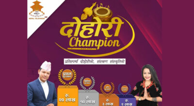काठमाडौं । दोहोरी रियालिटी शो ‘दोहोरी च्याम्पियन’मा उत्कृष्ट १६ को प्रतिस्पर्धा शुरु भएको छ ।
