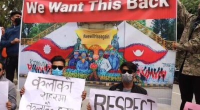 काठमाडौं । कलाकारहरुले कोरोना महामारीमा अग्रपंक्तिमा खटेर काम गर्ने व्यक्तिहरुको सम्मानका लागि रत्नपार्कस्थित आकाशे पुलको