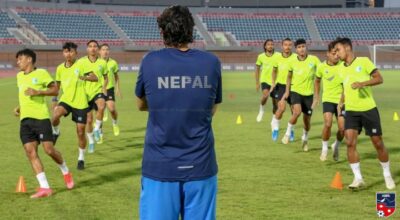 काठमाडौं । नेपाली राष्ट्रिय फुटबल टिमका ११ जना खेलाडीमा कोरोना संक्रमण पुष्टि भएको छ ।