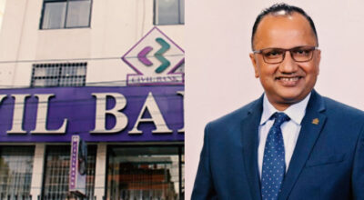 काठमाडौं । सिभिल बैंक लिमिटेडको प्रमुख कार्यकारी अधिकृत (सीईओ )मा सुनिलकुमार पोखरेल नियुक्त भएका छन्
