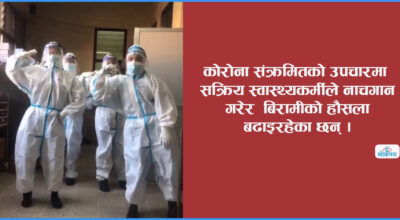 काठमाडौं । हातमा डबल ग्लब्स, मुखमा ट्रिपल मास्क,आँखामा सेफ्टी चस्मा, अनुहारमा फेस सिल्ड, शरीर ढाकिने