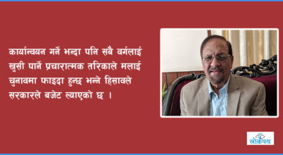 काठमाडौं । सरकारले ल्याएको आर्थिक वर्ष २०७८/०६९ को बजेटले वर्तमान परिस्थिति अनुकुल नीजि क्षेत्रको अधिकांश