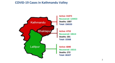 काठमाडौं । काठमाडौं उपत्यकामा मात्रै ४२ हजार ६ सय ६६ जना सक्रिय संक्रमित रहेका छन्