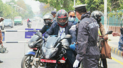 काठमाडौं । काठमाडौं उपत्यकाभित्र जारी रहेको निषेधाज्ञालाई पर्वाहा नगरी अनावश्यक रुपमा सडकमा हिँड्ने १ सय