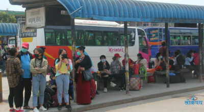 काठमाडौं । काठमाडौंको गंगबुँस्थित नयाँ बसपार्कमा घर जाने यात्रुको भिडभाड आज (बुधवार)पनि देखिएको छ ।