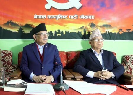 काठमाडौं- नेपाल कम्युनिष्ट पार्टी (नेकपा) का पुष्पकमल दाहाल ‘प्रचण्ड’ माधव कुमार नेपाल पक्षले संसद सचिवालयमा
