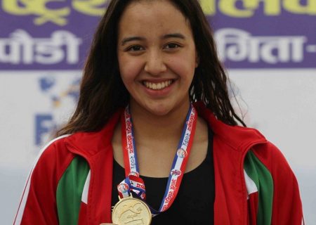१३औं दक्षिण एसियाली खेलकुद (साग) मा पौडितर्फ नेपाललाई चार स्वर्ण पदक दिलाएकी गौरिका सिंह तथा