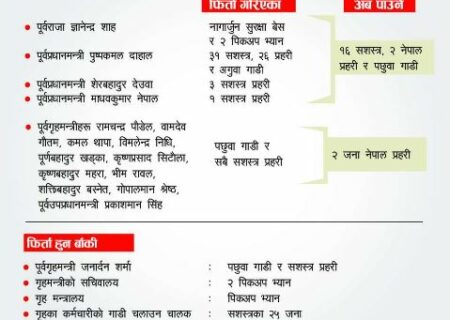 सरकारलेपूर्वराजा, पूर्वप्रधानमन्त्रीसहित सार्वजनिक पदाधिकारीको सुरक्षामा खटिएका प्रहरी र सशस्त्र प्रहरीका १३ वटा पछुवा गाडी र