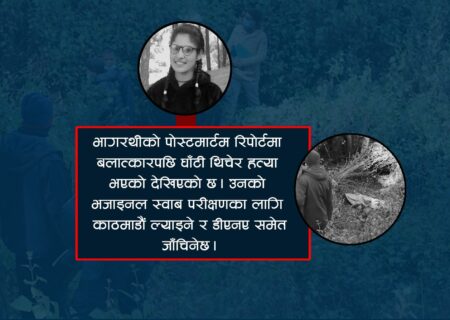 काठमाडौं – बैतडी दोगडाकेदार गाउँपालिका ७ चडेपानीकी १७ वर्षीया किशोरी भागरथी भट्टको बलात्कारपछि हत्या भएको