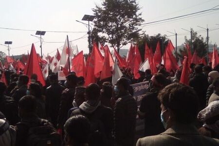 काठमाडौं । नेकपा केपी ओली समूहले बिहीवार राजधानीमा जुलुस निकालेको छ । प्रचण्ड–नेपाल पक्षको देशव्यापी