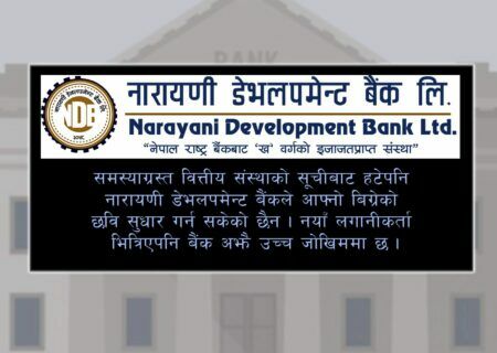 काठमाडौं । समस्याग्रस्त वित्तीय संस्थाको सूचीबाट हटेपनि नारायणी डेभलपमेन्ट बैंकले आफ्नो बिग्रेको छवि सुधार गर्न