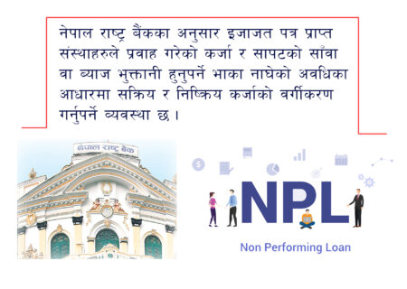 काठमाडौं – सामान्यतया बैंक तथा वित्तीय संस्थाहरुले लगानी गरेका असल तथा सुक्ष्म निगरानीमा रहेका कर्जालाई