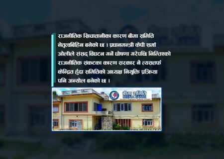 कमला अर्याल / काठमाडौँ – बीमा कम्पनीहरुको नियामक निकाय बीमा समिति अहिले नेतृत्वविहिन बन्न पुगेको