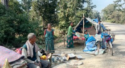 धनगढी । कैलालीको भजनी नगरपालिका वडा नम्बर ७, हिक्मतपुर सामुदायिक वनभित्र सानो टहरामा गुजारा गरिरहेका