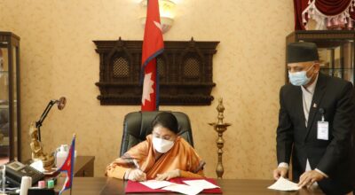 काठमाडौं । राष्ट्रपति विद्यादेवी भण्डारीले राजनीतिक दलसम्बन्धी अध्यादेश प्रमाणीकरण गरेर जारी गरेकै दिन आज नेकपा