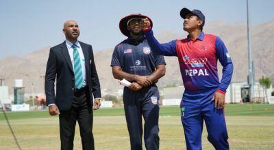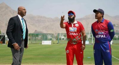 काठमाडौं। आईसीसी विश्वकप क्रिकेट लिग-२ अन्तर्गत जारी नेपाल र ओमानबीचको खेलमा आयोजक राष्ट्र ओमानले नेपाललाई