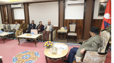 काठमाडौं । राष्ट्रपति निर्वाचनबारे प्रधानमन्त्री पुष्पकमल दाहाल ‘प्रचण्ड’ र नेपाली कांग्रेसका शीर्ष नेताहरुबीच छलफल भएको