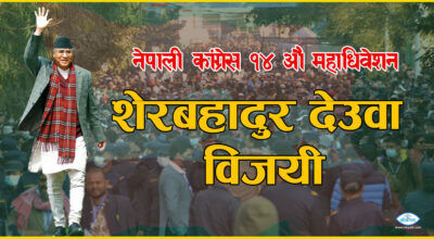 काठमाडौं । प्रधानमन्त्री एवं नेपाली कांग्रेसका सभापति शेरबहादुर देउवाले पार्टीको आसन्न १४औं महाधिवेशन सफलतापूर्वक सम्पन्न